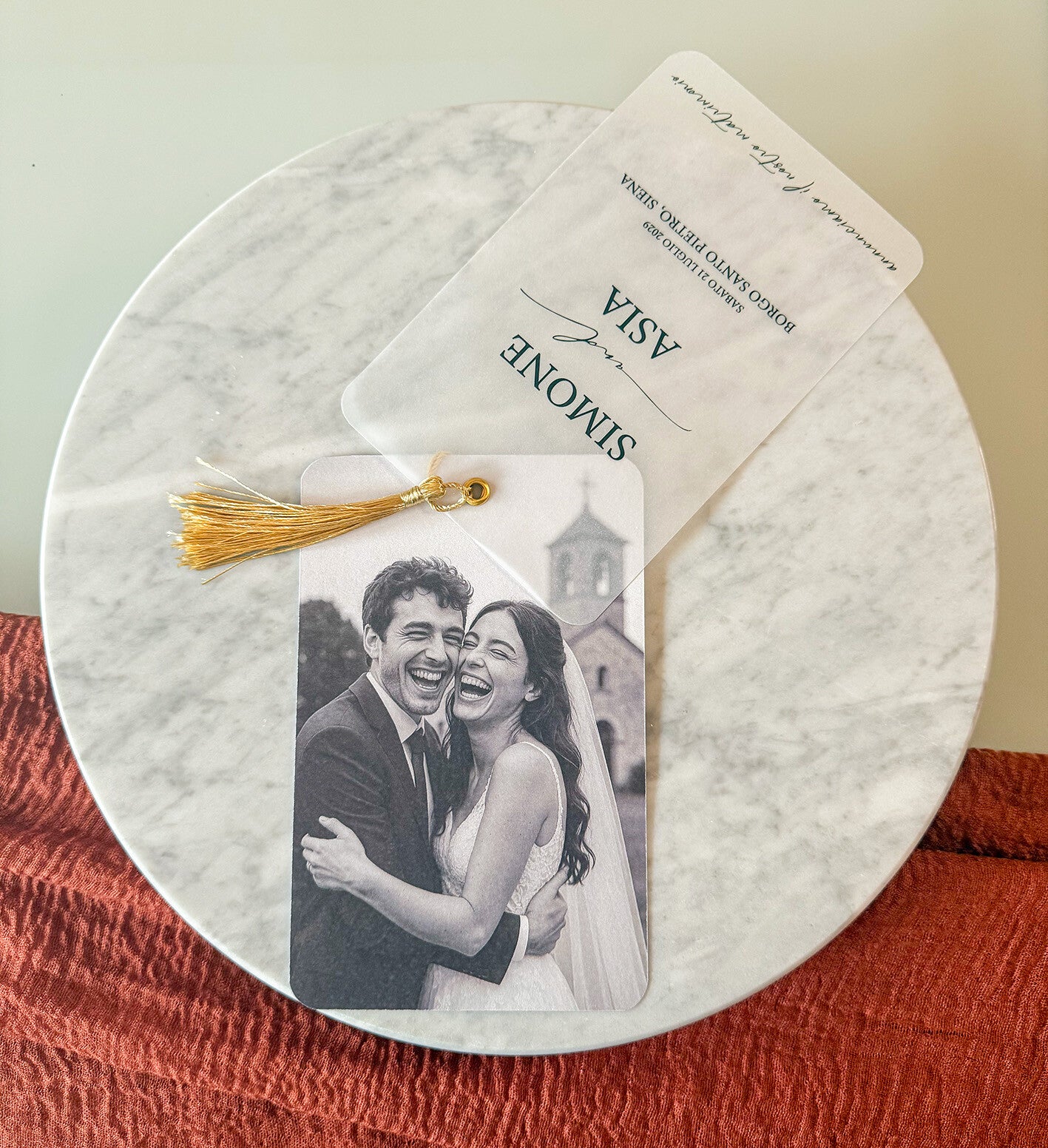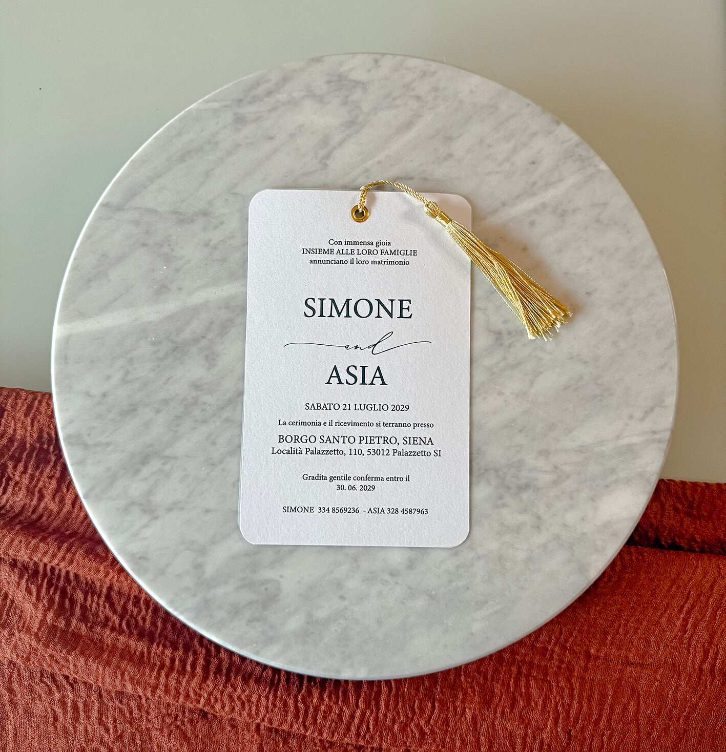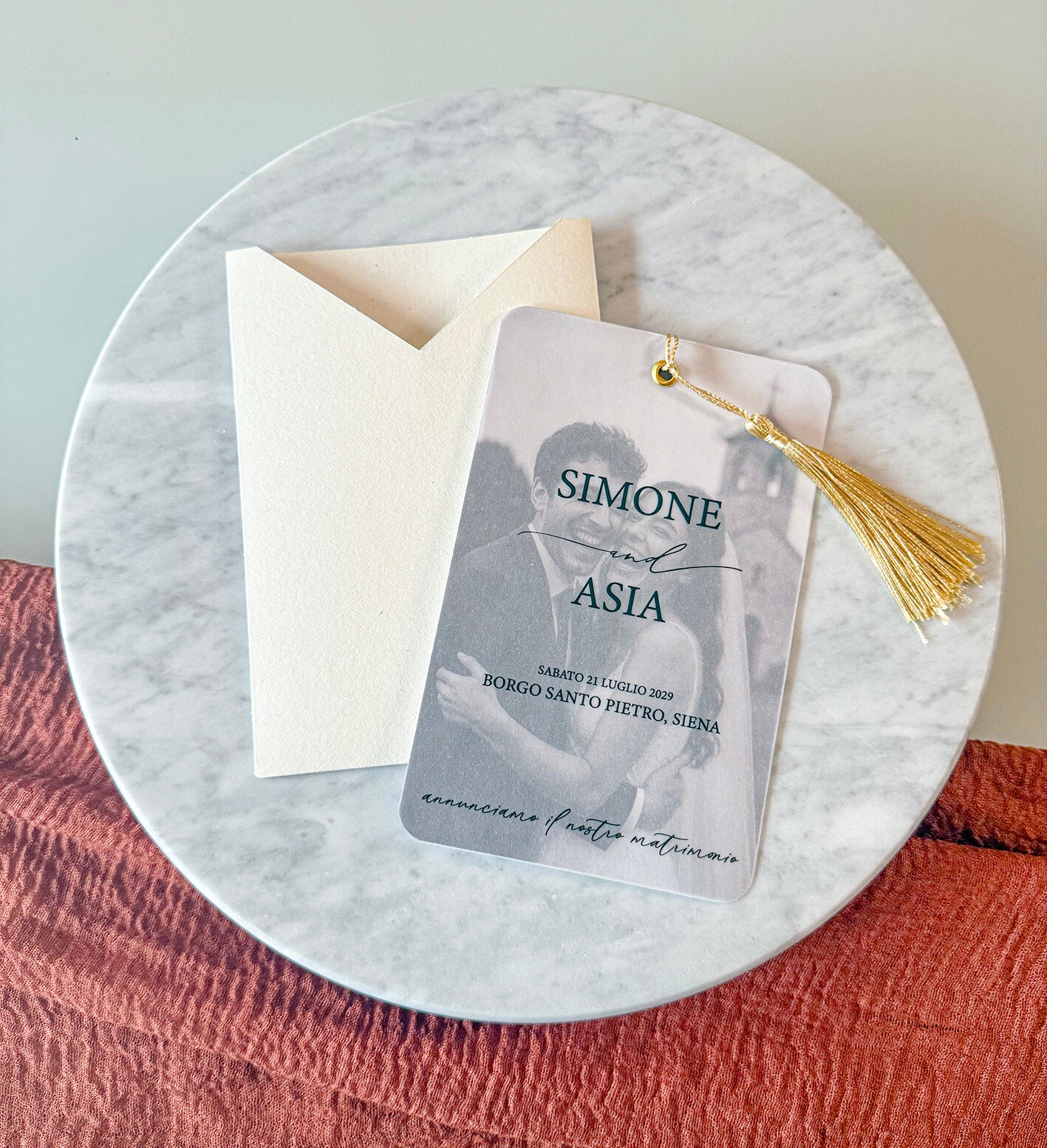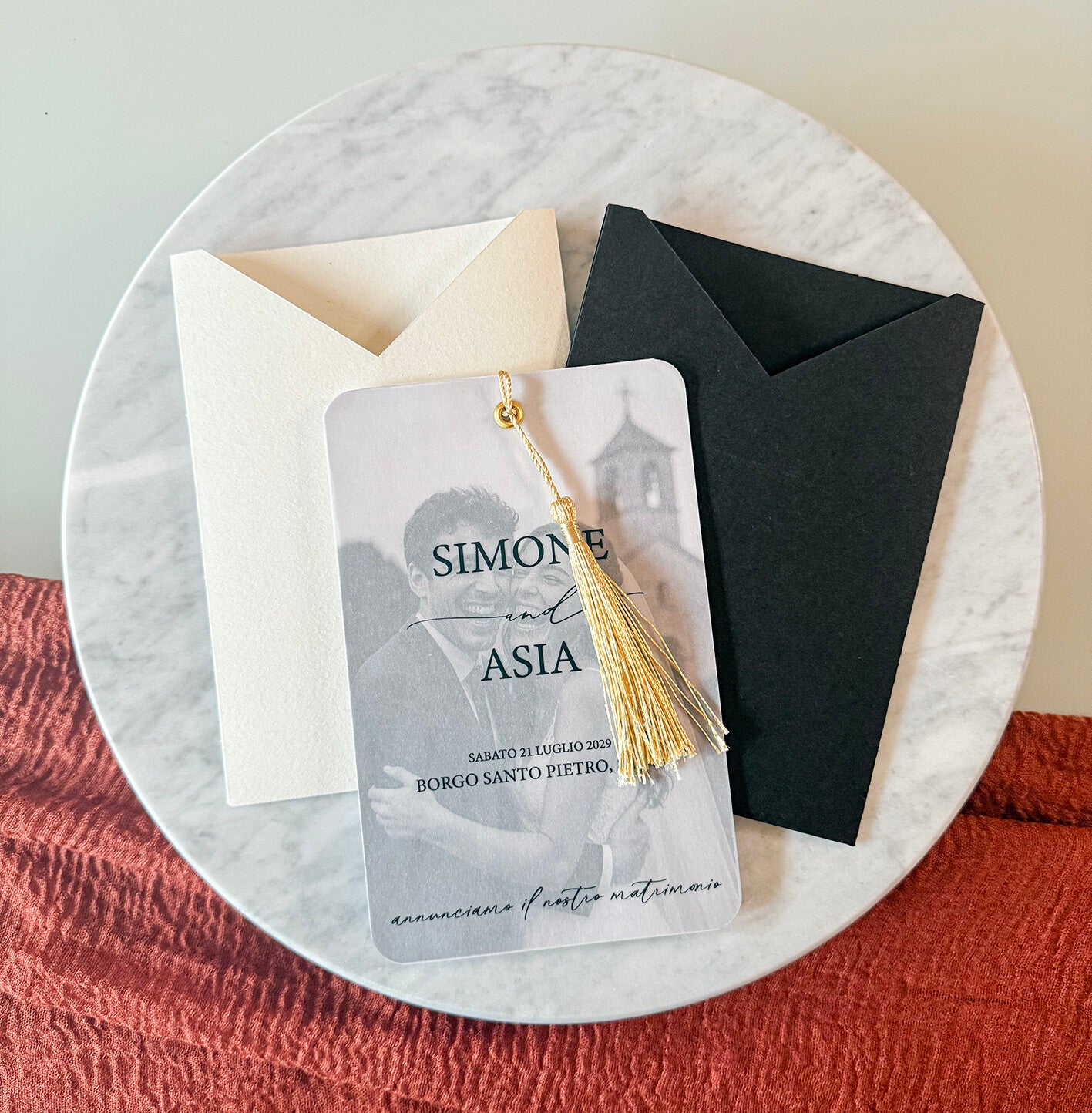 - Partecipazione in carta White frost con stampa fronte/retro B/N